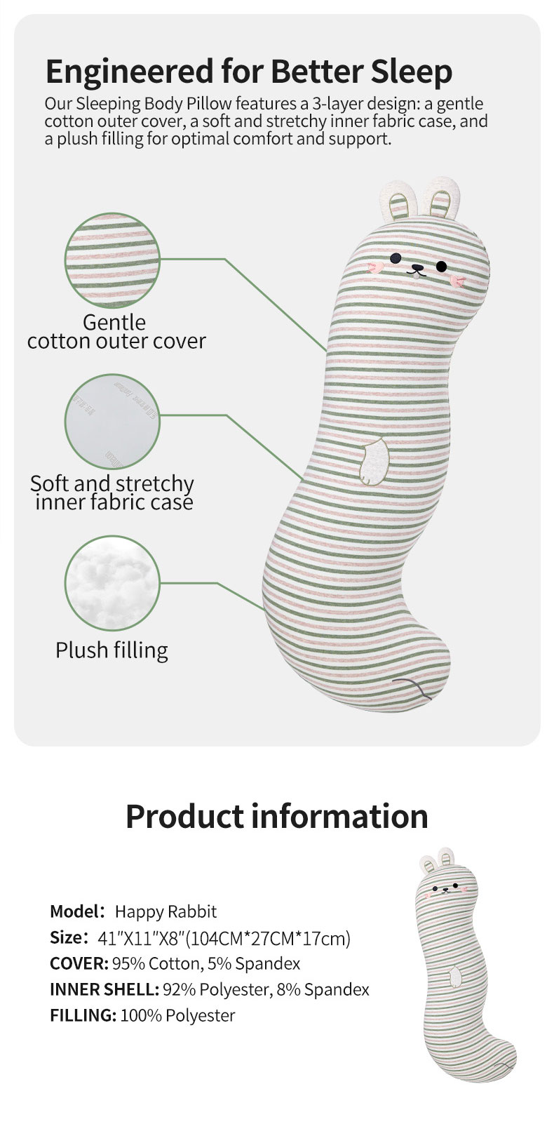 FUNMELON Large Body Pillow Insert- Breathable Full Body Pillow for Sleeping - Soft Long Bed Pillow for Adults