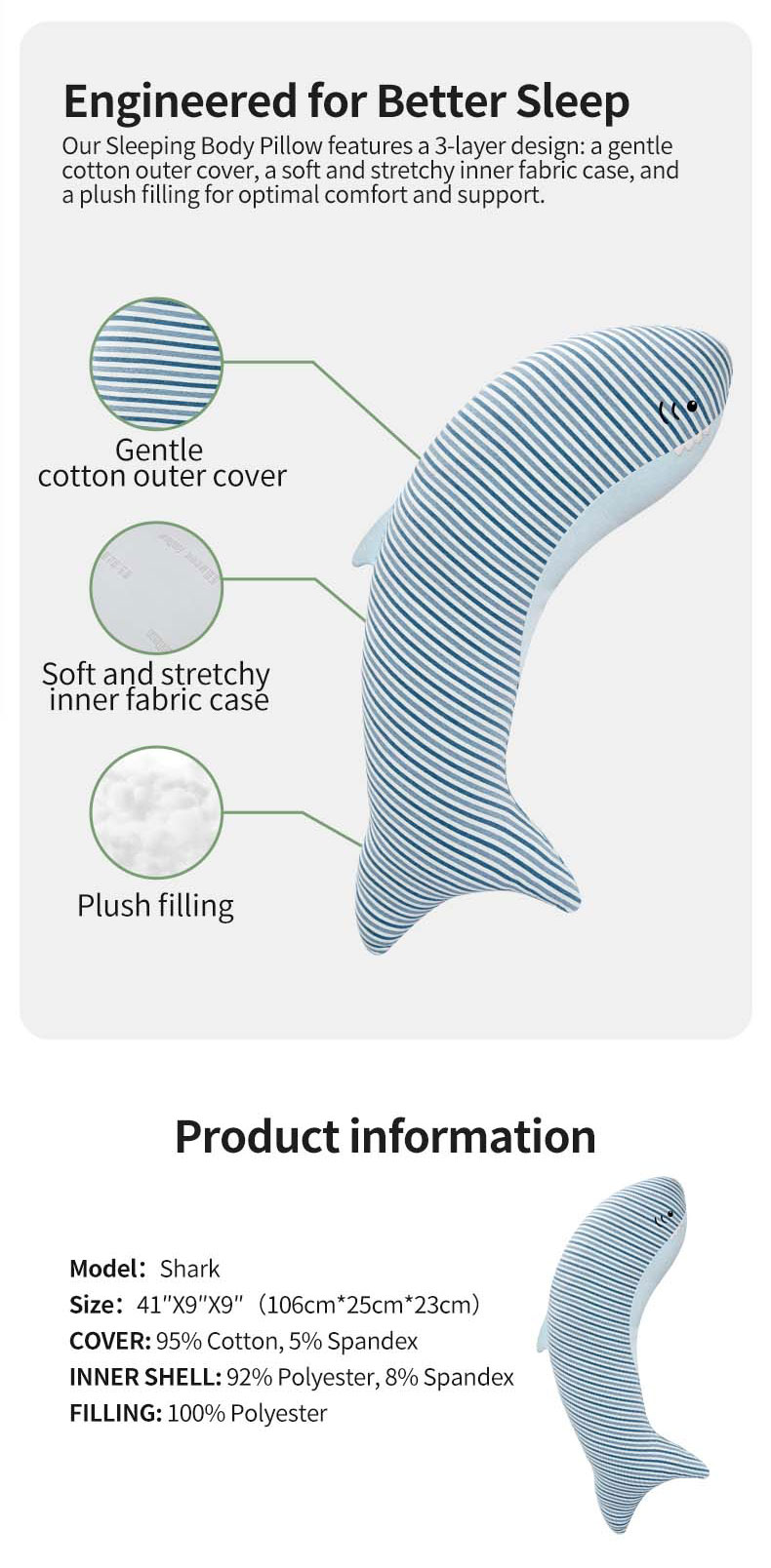 FUNMELON Large Body Pillow Insert- Breathable Full Body Pillow for Sleeping - Soft Long Bed Pillow for Adults